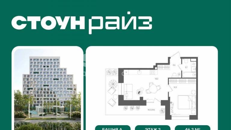 Старт продаж квартир в ЖК бизнес+ класса от девелопера STONE В продаже функциональная и светлая односпальная квартира с кухней-гостиной и одной спальней для...