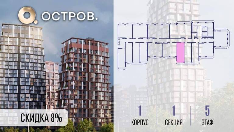 Продаётся квартира от застройщика: общая площадь 28.00 м, жилая 14.00 м, кухня 5.00 м, 5-й этаж, жилой квартал «Остров 14», корпус 1 (секция 1) . Срок сдачи: 2...