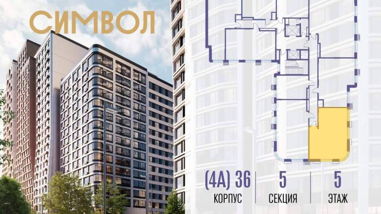 Продается 1-комнатная квартира от застройщика: общая площадь 36.40 м, жилая 14.00 м, кухня 13.40 м, 6-й этаж, жилой квартал «Гордость», корпус 36 (секция 4) .