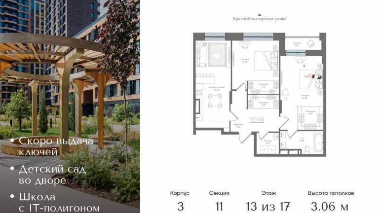 Рассрочка 0% от застройщика. Первоначальный взнос от 20%. Предложение действует до 31 декабря 2025 года Квартира на 17 этаже в жилом комплексе премиум-класса...
