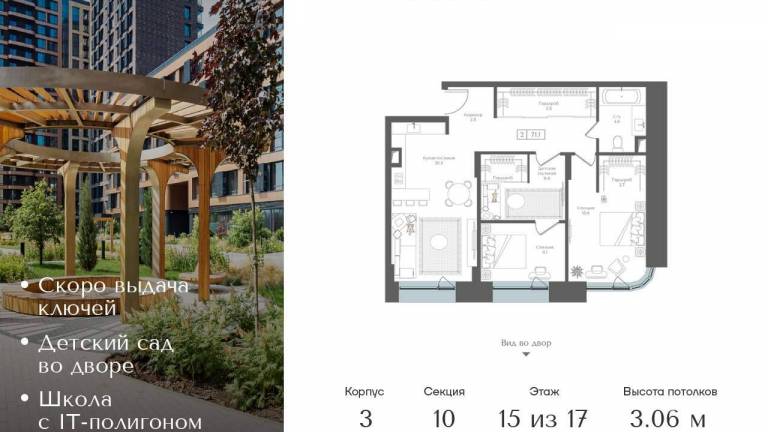 Рассрочка 0% от застройщика. Первоначальный взнос от 20%. Предложение действует до 31 декабря 2025 года Квартира на 17 этаже в жилом комплексе премиум-класса...