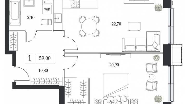 ОН 23031. Замечательная двухкомнатная квартира с функцией «умный дом», предчистовая отделка «white box», подойдет, как для инвестирования, так и для...