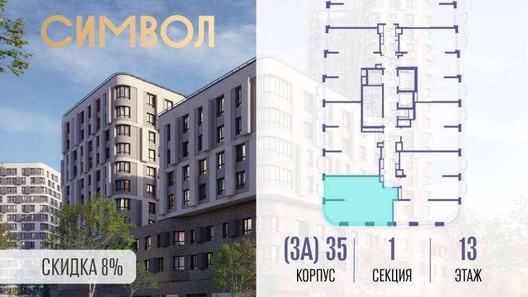 Продается 1-комнатная квартира от застройщика: общая площадь 55.70 м, жилая 13.70 м, кухня 28.40 м, 13-й этаж, жилой квартал «Вдохновение», корпус 35 (секция...
