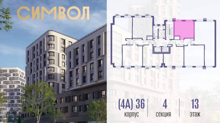 Продается 1-комнатная квартира от застройщика: общая площадь 41.50 м, жилая 15.00 м, кухня 17.60 м, 13-й этаж, жилой квартал «Гордость», корпус 36 (секция 3) .