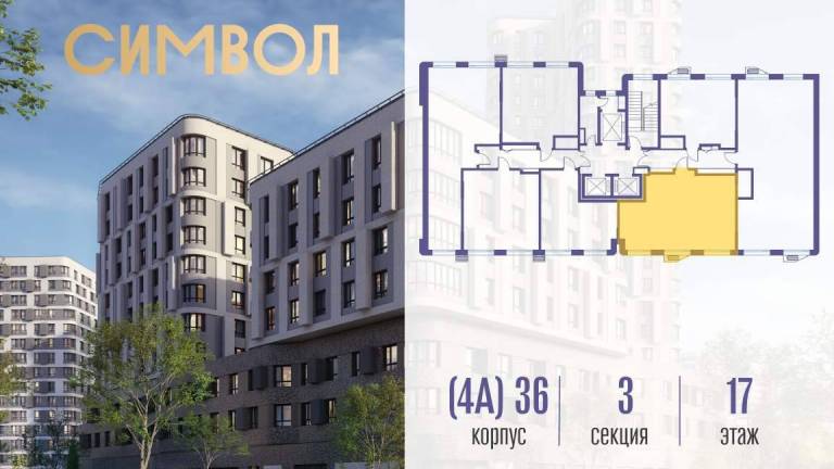 Продается 3-комнатная квартира от застройщика: общая площадь 87.80 м, жилая 46.20 м, кухня 24.20 м, 18-й этаж, жилой квартал «Гордость», корпус 36 (секция 1) .