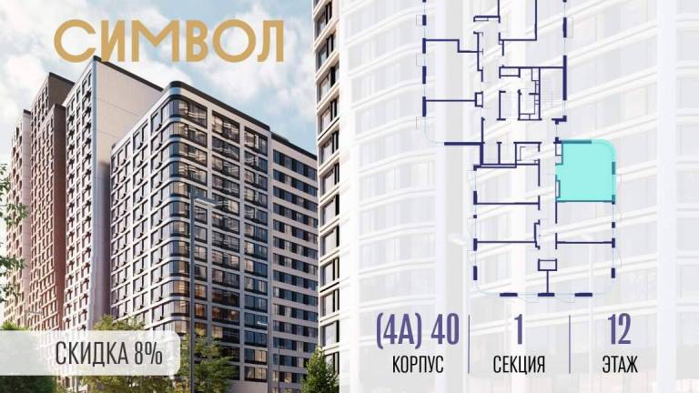 Продается квартира-студия от застройщика: общая площадь 28.00 м, жилая 15.90 м, кухня 5.00 м, 8-й этаж, жилой квартал «Гордость», корпус 40 (секция 1) . Срок...