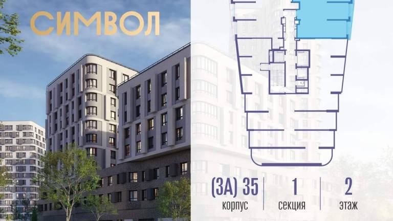 Продается 1-комнатная квартира от застройщика: общая площадь 35.60 м, жилая 13.80 м, кухня 12.60 м, 21-й этаж, жилой квартал «Вдохновение», корпус 33 (секция...