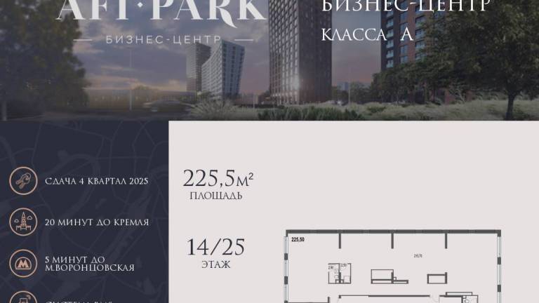 Фильтры1Продается просторное коммерческое помещение общей площадью 225,5 м2 на 14 этаже в строящемся бизнес-центре AFI Park. 21-этажный бизнес-центр AFI Park...