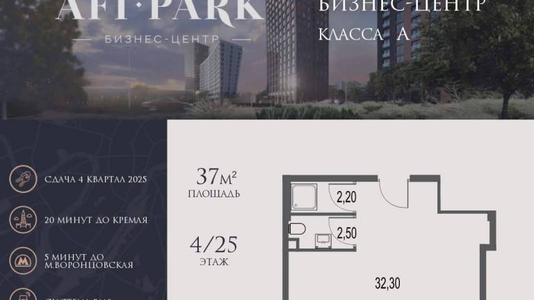 Фильтры1Продается просторное коммерческое помещение общей площадью 37 м2 на 4 этаже в строящемся бизнес-центре AFI Park. 21-этажный бизнес-центр AFI Park...