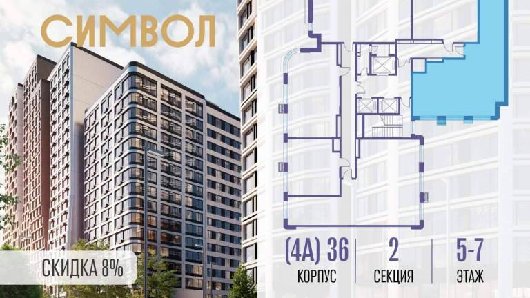 Продаётся 2-комнатная квартира от застройщика: общая площадь 61.80 м, жилая 32.90 м, кухня 17.80 м, 30-й этаж, жилой квартал «Событие-6», корпус 2 (секция 5...