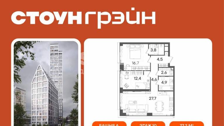 Старт продаж квартир в ЖК бизнес+ класса от девелопера STONE В продаже светлая пятиспальная квартира с просторной кухней-гостиной, пятью спальнями и балконом...