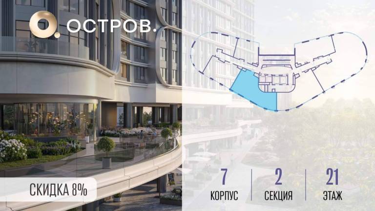 Продаётся 1-комн. квартира от застройщика: общая площадь 50.00 м, жилая 17.50 м, кухня 23.30 м, 18-й этаж, жилой квартал «Остров 7», корпус 7 (секция 2) . Срок...