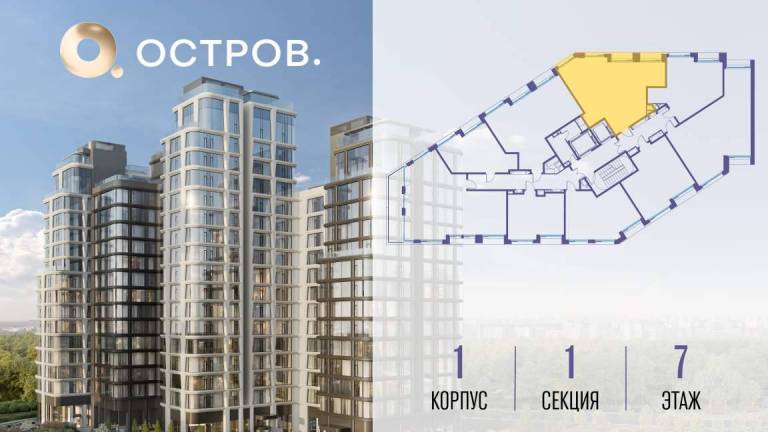 Продаётся 3-комн. квартира от застройщика: общая площадь 113.20 м, жилая 42.10 м, кухня 25.30 м, 11-й этаж, жилой квартал «Остров 12», корпус 1 (секция 1) .