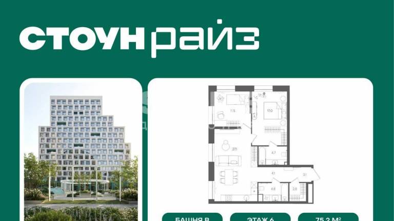 Старт продаж квартир в ЖК бизнес+ класса от девелопера STONE В продаже функциональная и светлая трехспальная квартира с кухней-гостиной и тремя спальнями для...