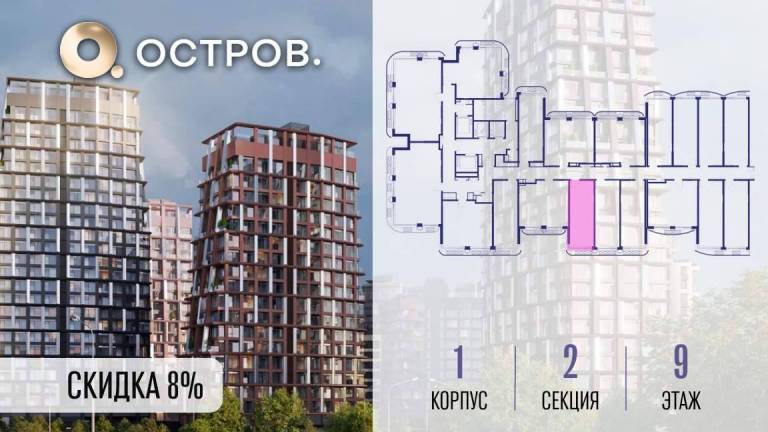 Продаётся квартира от застройщика: общая площадь 28.00 м, жилая 14.40 м, кухня 5.00 м, 9-й этаж, жилой квартал «Остров 14», корпус 1 (секция 2) . Срок сдачи: 2...
