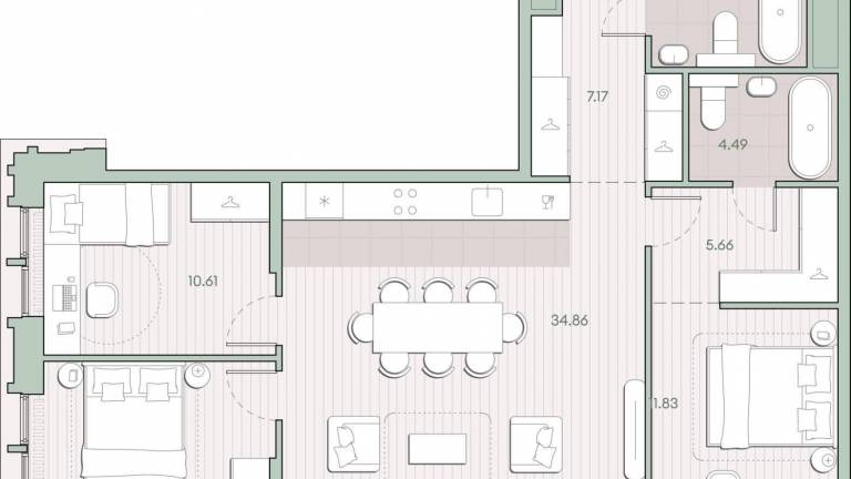 Продаётся 4-комн. квартира от застройщика: общая площадь 148.70 м, жилая 50.40 м, кухня 43.10 м, 14-й этаж, жилой квартал «Остров 7», корпус 3 (секция 1) .