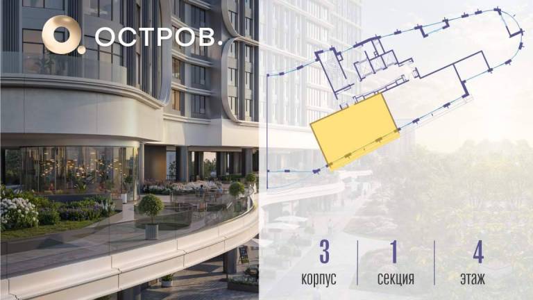 Продаётся 4-комн. квартира от застройщика: общая площадь 134.90 м, жилая 50.10 м, кухня 41.70 м, 14-й этаж, жилой квартал «Остров 7», корпус 3 (секция 2) .