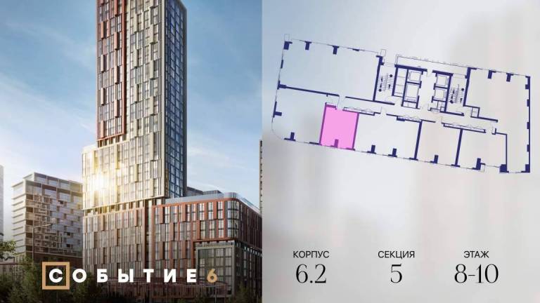 Продаётся 2-комнатная квартира от застройщика: общая площадь 62.20 м, жилая 32.60 м, кухня 17.80 м, 15-й этаж, жилой квартал «Событие-6», корпус 2 (секция 5...