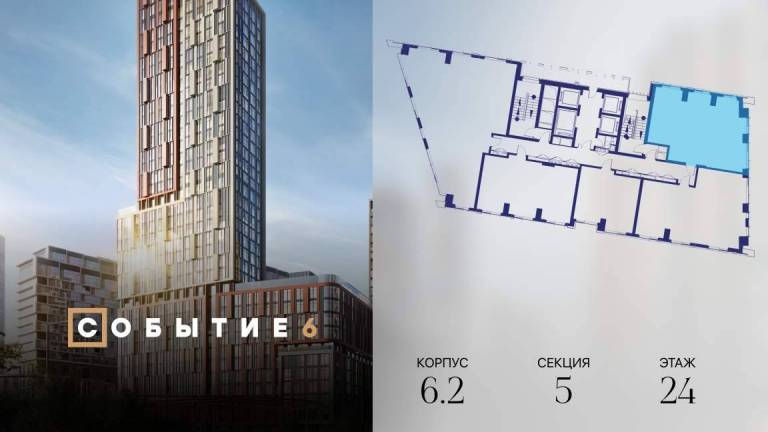 Продаётся 3-комнатная квартира от застройщика: общая площадь 99.70 м, жилая 42.00 м, кухня 23.20 м, 20-й этаж, жилой квартал «Событие-6», корпус 2 (секция 1...