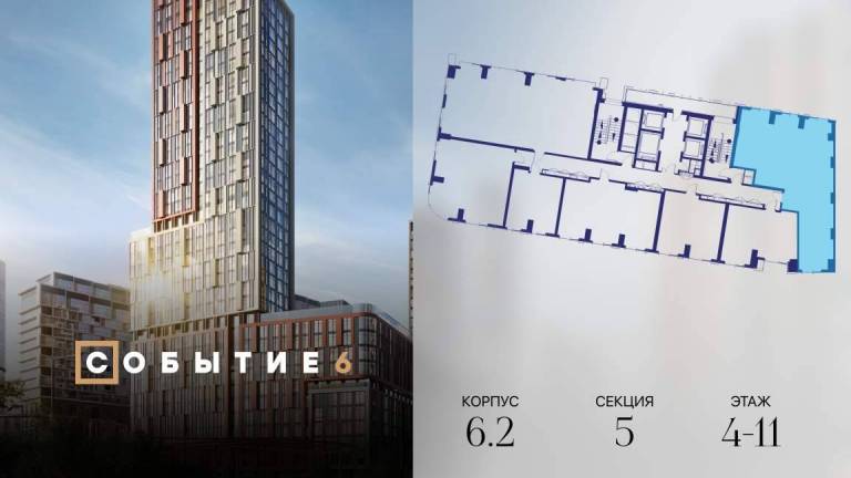 Продаётся 4-комнатная квартира от застройщика: общая площадь 120.70 м, жилая 55.60 м, кухня 27.50 м, 7-й этаж, жилой квартал «Событие-6», корпус 2 (секция 5...