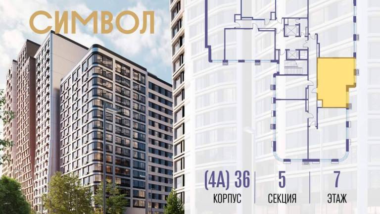 Продаётся 1-комнатная квартира от застройщика: общая площадь 56.40 м, жилая 15.70 м, кухня 29.20 м, 20-й этаж, жилой квартал «Событие-6», корпус 2 (секция 5...