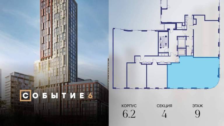 Продаётся 2-комнатная квартира от застройщика: общая площадь 61.80 м, жилая 32.90 м, кухня 17.80 м, 32-й этаж, жилой квартал «Событие-6», корпус 2 (секция 5...