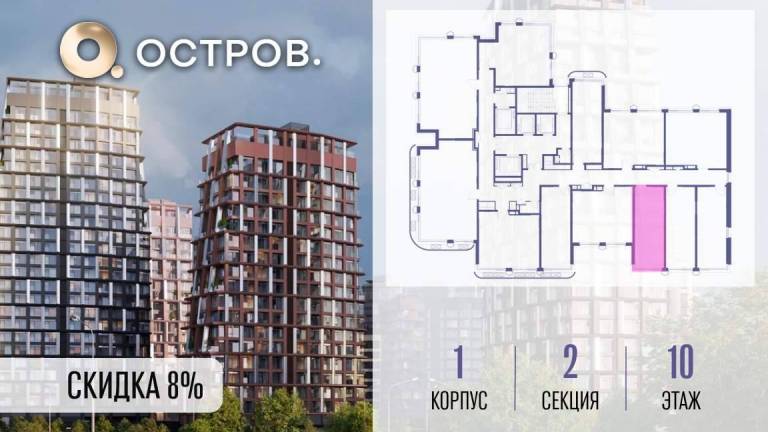 Продаётся 1-комн. квартира от застройщика: общая площадь 38.80 м, жилая 14.10 м, кухня 18.30 м, 10-й этаж, жилой квартал «Остров 14», корпус 1 (секция 2) .