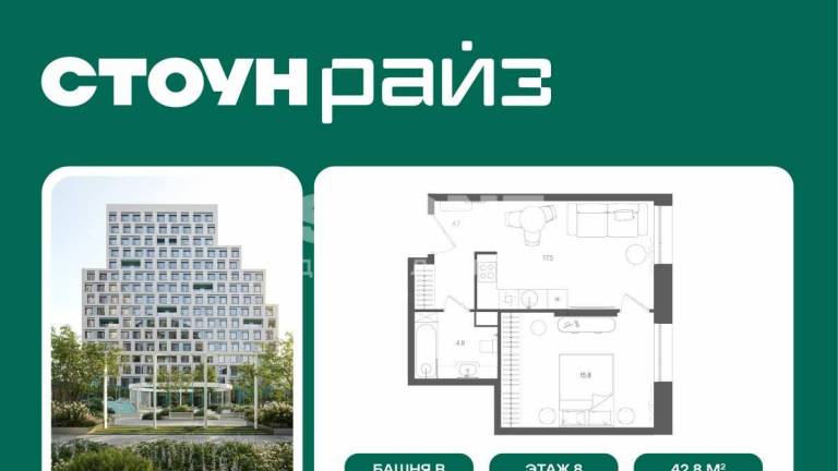 Старт продаж квартир в ЖК бизнес+ класса от девелопера STONE В продаже функциональная и светлая односпальная квартира с кухней-гостиной и одной спальней для...