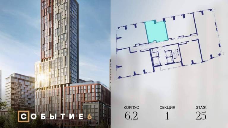 Фильтры1Продаётся 1-комнатная квартира от застройщика: общая площадь 44.80 м, жилая 17.00 м, кухня 20.20 м, 25-й этаж, жилой квартал «Событие-6», корпус 2 (секция 1...