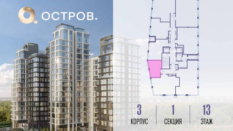 Продаётся 3-комн. квартира от застройщика: общая площадь 116.80 м, жилая 40.60 м, кухня 28.50 м, 10-й этаж, жилой квартал «Остров 12», корпус 1 (секция 2) .