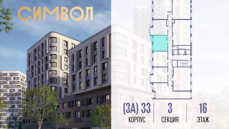 Продается 1-комнатная квартира от застройщика: общая площадь 35.60 м, жилая 13.80 м, кухня 12.60 м, 19-й этаж, жилой квартал «Вдохновение», корпус 33 (секция...