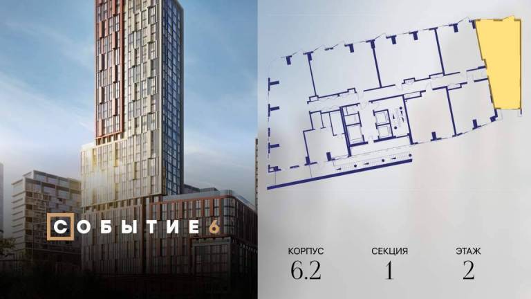 Продаётся 2-комнатная квартира от застройщика: общая площадь 74.60 м, жилая 28.40 м, кухня 26.30 м, 20-й этаж, жилой квартал «Событие-6», корпус 2 (секция 1...