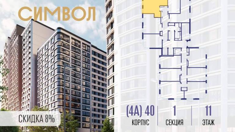 Продаётся 1-комнатная квартира от застройщика: общая площадь 38.80 м, жилая 14.90 м, кухня 16.00 м, 34-й этаж, жилой квартал «Событие-6», корпус 2 (секция 5...
