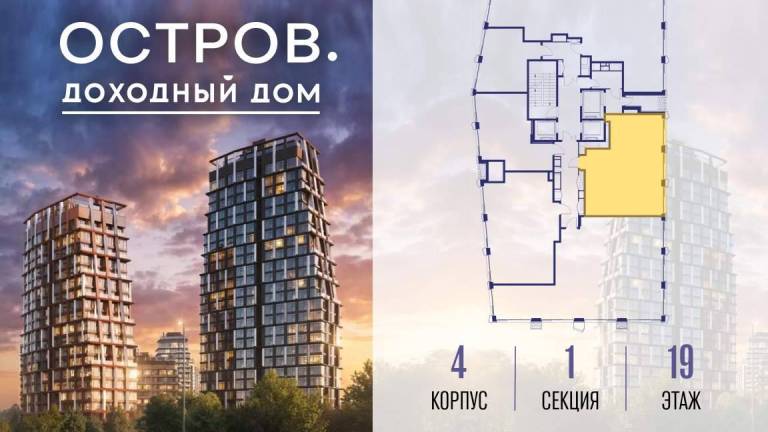 Продаётся 4-комн. квартира от застройщика: общая площадь 128.60 м, жилая 48.10 м, кухня 44.70 м, 17-й этаж, жилой квартал «Остров 7», корпус 4 (секция 2) .