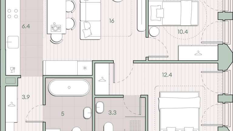 Продаётся 4-комн. квартира от застройщика: общая площадь 132.10 м, жилая 61.10 м, кухня 25.70 м, 16-й этаж, жилой квартал «Остров 12», корпус 3 (секция 1) .