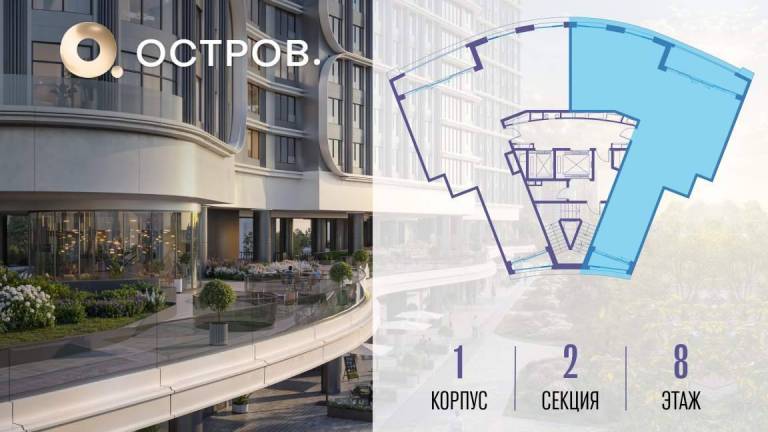Продаётся 2-комн. квартира от застройщика: общая площадь 80.00 м, жилая 32.30 м, кухня 30.90 м, 10-й этаж, жилой квартал «Остров 12», корпус 1 (секция 1) .