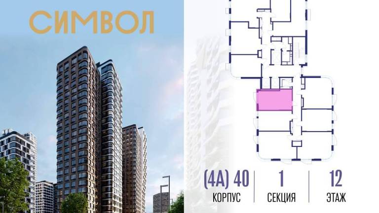 Продается квартира-студия от застройщика: общая площадь 28.00 м, жилая 16.60 м, кухня 5.00 м, 12-й этаж, жилой квартал «Гордость», корпус 40 (секция 1) . Срок...
