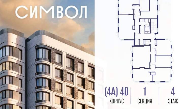 Продается 1-комнатная квартира от застройщика: общая площадь 37.10 м, жилая 14.30 м, кухня 16.60 м, 4-й этаж, жилой квартал «Гордость», корпус 40 (секция 1) .