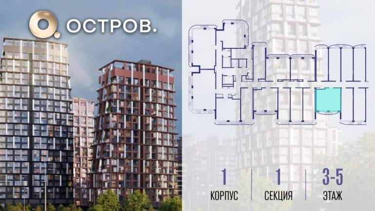 Продаётся квартира от застройщика: общая площадь 31.70 м, жилая 14.30 м, кухня 5.00 м, 19-й этаж, жилой квартал «Остров 14», корпус 6 (секция 1) . Срок сдачи...