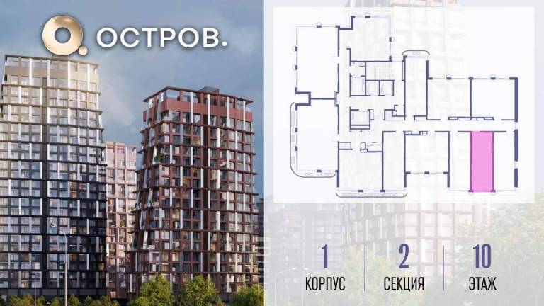 Продаётся квартира от застройщика: общая площадь 28.00 м, жилая 14.40 м, кухня 5.00 м, 3-й этаж, жилой квартал «Остров 14», корпус 1 (секция 1) . Срок сдачи: 2...