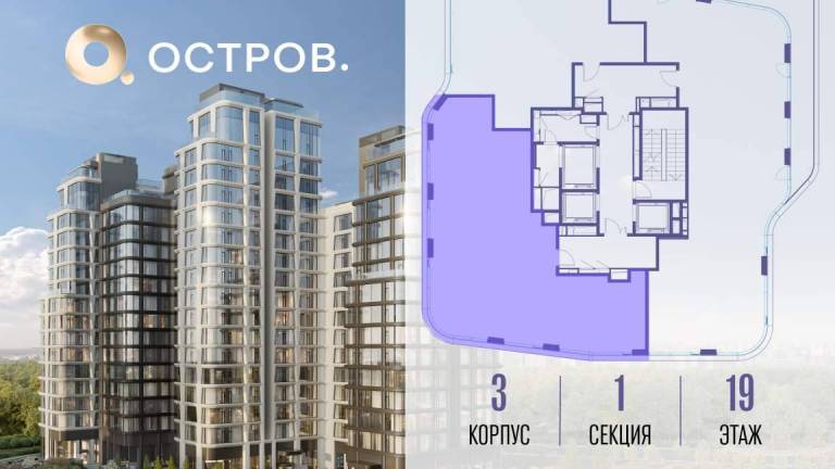 Продаётся 3-комн. квартира от застройщика: общая площадь 147.00 м, жилая 49.90 м, кухня 34.20 м, 20-й этаж, жилой квартал «Остров 7», корпус 7 (секция 1) .