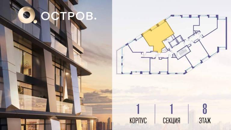 Продаётся 1-комн. квартира от застройщика: общая площадь 44.00 м, жилая 14.30 м, кухня 19.40 м, 21-й этаж, жилой квартал «Остров 7», корпус 7 (секция 1) . Срок...