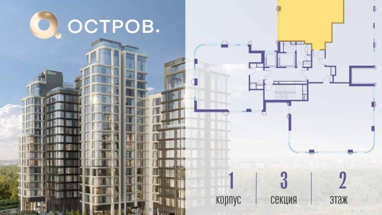 Продаётся 4-комн. квартира от застройщика: общая площадь 123.50 м, жилая 50.30 м, кухня 37.20 м, 6-й этаж, жилой квартал «Остров 12», корпус 1 (секция 2) .