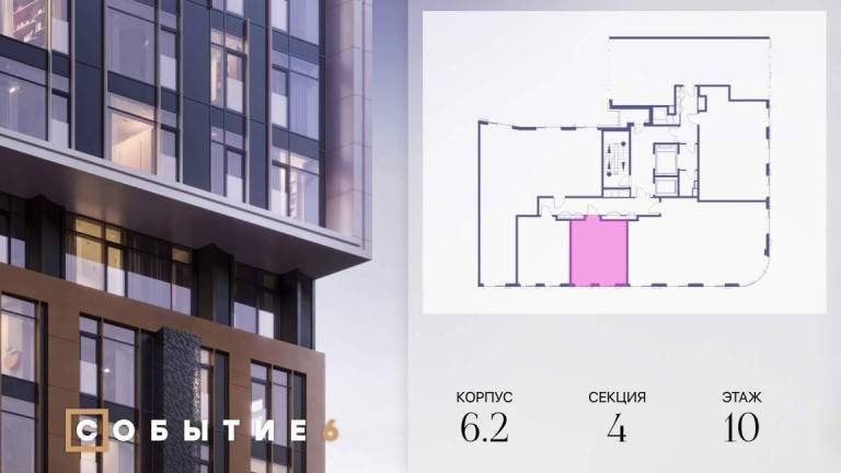 Продаётся 2-комнатная квартира от застройщика: общая площадь 64.30 м, жилая 26.30 м, кухня 20.60 м, 6-й этаж, жилой квартал «Событие-6», корпус 2 (секция 5...