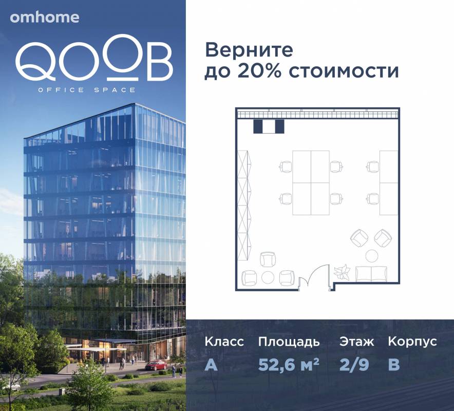 Продается офисное помещение площадью 52,6 м² на 2 этаже, в бизнес-центре QOOB класса «А» от застройщика Dominanta. Высокая степень готовности. Ключи в 1 квартале 2026 года. Выгодные условия: Рассрочка 0% до марта 2026 года. Ипотека от 12 %. Полная стоимость кредита от 9,42% до 29,6%. ПВ от 15 % до 500 000 000 руб.до 15 лет юр. лица, до 30 лет. физ. лица АО «Банк Дом.рф» Генеральная лицензия на осуществление банковских операций № 2312 от...