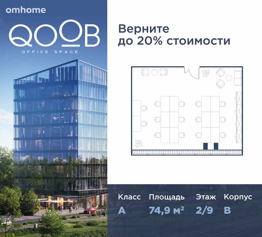 Продается офисное помещение площадью 74,9 м² на 2 этаже, в бизнес-центре QOOB класса «А» от застройщика Dominanta. Высокая степень готовности. Ключи в 1 квартале 2026 года. Выгодные условия: Рассрочка 0% до марта 2026 года. Ипотека от 12 %. Полная стоимость кредита от 9,42% до 29,6%. ПВ от 15 % до 500 000 000 руб.до 15 лет юр. лица, до 30 лет. физ. лица АО «Банк Дом.рф» Генеральная лицензия на осуществление банковских операций № 2312 от...