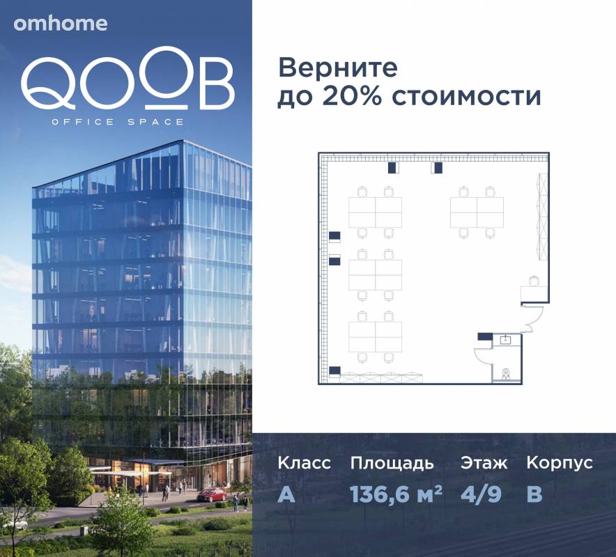 Продается офисное помещение площадью 136,6 м² на 4 этаже, в бизнес-центре QOOB класса «А» от застройщика Dominanta. Высокая степень готовности. Ключи в 1 квартале 2026 года. Выгодные условия: Рассрочка 0% до марта 2026 года. Ипотека от 12 %. Полная стоимость кредита от 9,42% до 29,6%. ПВ от 15 % до 500 000 000 руб.до 15 лет юр. лица, до 30 лет. физ. лица АО «Банк Дом.рф» Генеральная лицензия на осуществление банковских операций № 2312 от...
