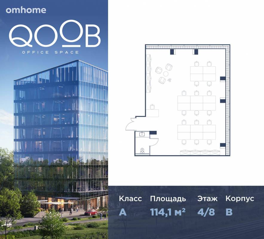Продается офисное помещение площадью 114,1 м2 на 4 этаже, в бизнес-центре QOOB от застройщика Dominanta. ЗАО, район Фили-Давыдково, м.Кунцевская Высокая степень готовности. Срок реализации проекта – IV квартал 2025 год. Премиальный бизнес-центр QOOB, состоит из двух корпусов Q и B, спроектированных архитектурным бюро IND Аrсhitеcts, полностью облицованных стеклом, благодаря чему производят впечатление грациозной легкости. Гостей и сотрудников...