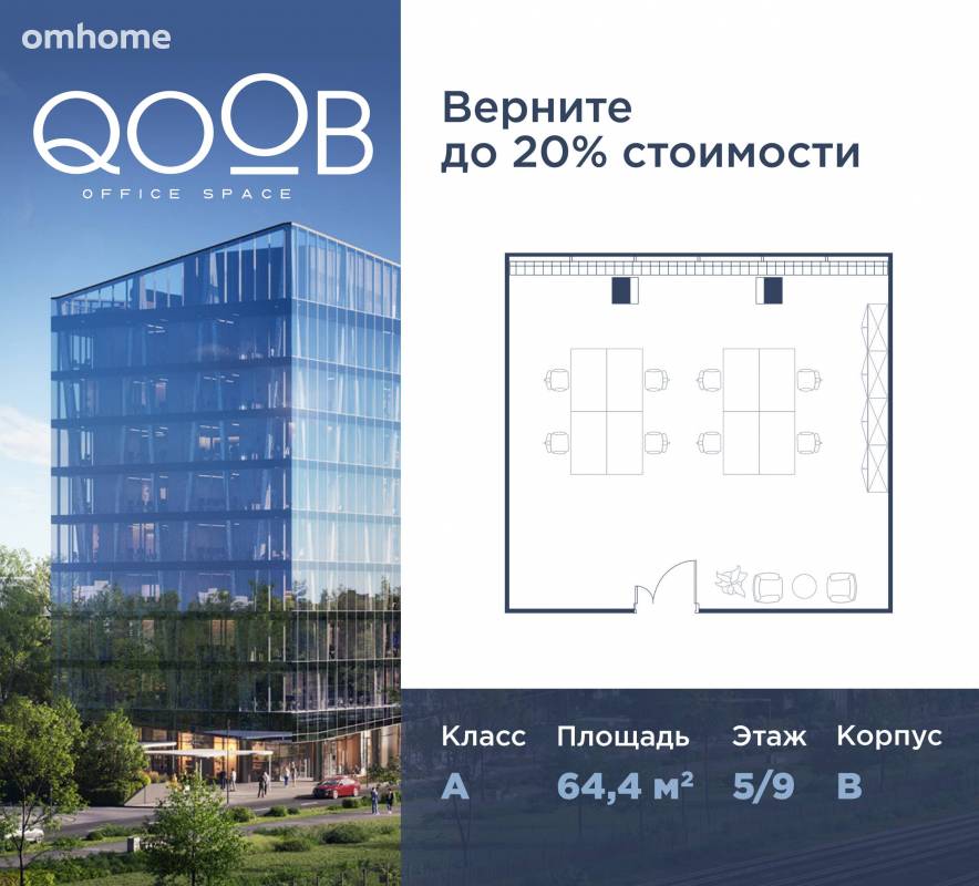 Продается офисное помещение площадью 64,4 м² на 5 этаже, в бизнес-центре QOOB класса «А» от застройщика Dominanta. Высокая степень готовности. Ключи в 1 квартале 2026 года. Выгодные условия: Рассрочка 0% до марта 2026 года. Ипотека от 12 %. Полная стоимость кредита от 9,42% до 29,6%. ПВ от 15 % до 500 000 000 руб.до 15 лет юр. лица, до 30 лет. физ. лица АО «Банк Дом.рф» Генеральная лицензия на осуществление банковских операций № 2312 от...