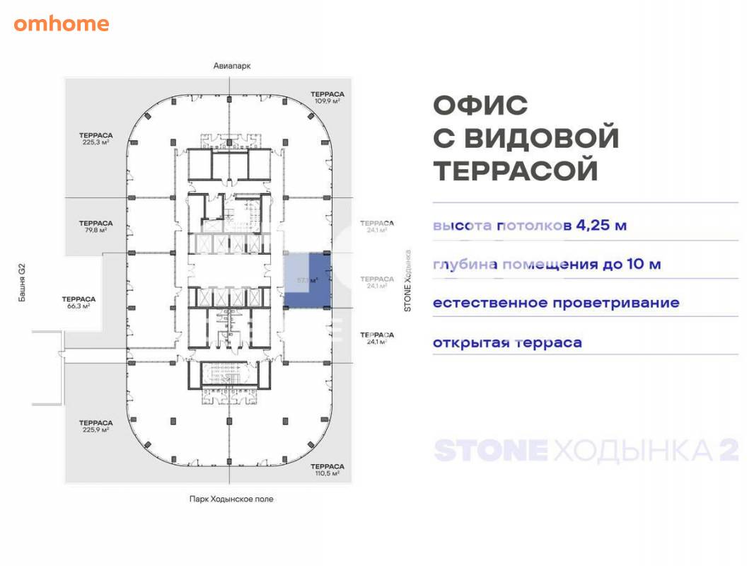 Уникальный формат коммерческой недвижимости – офисы с террасами от 80 кв. м в составе премиального офисного квартала STONE Ходынка 2 с прямым выходом в парк Ходынское поле.